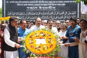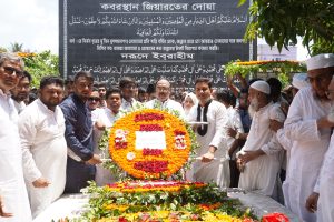 তিনি আরো বলেন, জাতীয় চার নেতার স্মৃতিকে সংরক্ষণে প্রধানমন্ত্রীর নির্দেশে জাতীয় চার নেতার জন্মস্থানে স্মৃতিস্তম্ভ ও স্মৃতিজাদুঘর নির্মাণের উদ্যোগ নিয়েছে সরকার। এই প্রকল্পের কাজ এগিয়ে চলেছে। রাজশাহীতে শহীদ কামারুজ্জামানের সমাধীস্থলে জাদুঘর নির্মাণ করা হবে। এর মাধ্যমে মুক্তিযুদ্ধের স্মৃতি সংরক্ষণ ও জাতীয় চার নেতার অবদান নতুন প্রজন্মের কাছে তুলে ধরা হবে। এ সময় উপস্থিত ছিলেন বাংলাদেশ আওয়ামী লীগ, রাজশাহী মহানগরের সভাপতি বীর মুক্তিযোদ্ধা মোহাম্মদ আলী কামাল, রাজশাহী জেলা আওয়ামী লীগের সভাপতি বীর মুক্তিযোদ্ধা অনিল কুমার সরকার, সাবেক মন্ত্রিপরিষদ সচিব কবির বিন আনোয়ার, রাজশাহী মহানগর আওয়ামী লীগের সহ-সভাপতি বীর মুক্তিযোদ্ধা নওশের আলী, ডা: তবিবুর রহমান শেখ, যুগ্ম সাধারণ সম্পাদক মোস্তাক হোসেন, সাংগঠনিক সম্পাদক এ্যাড. আসলাম সরকার, দপ্তর সম্পাদক মাহাবুব-উল-আলম বুলবুল, কৃষি বিষয়ক সম্পাদক মীর তৌফিক আলী ভাদু, তথ্য ও গবেষণা বিষয়ক সম্পাদক জিয়া হাসান আজাদ হিমেল, ধর্ম বিষয়ক সম্পাদক জাহিদুল ইসলাম জাহিদ, স্বাস্থ্য ও জনসংখ্যা বিষয়ক সম্পাদক ডা: ফ ম আ জাহিদ, কোষাধ্যক্ষ হাবিবুল্লাহ ডলার, মহানগর যুবলীগ সভাপতি মনিরুজ্জামান খাঁন মনির, সাধারণ সম্পাদত তৌরিদ আল মাসুদ রনি, রাজশাহী জেলা যুবলীগের সভাপতি মাহমুদ হাসান ফয়সল সজল, সাধারণ সম্পাদক ইয়াসির আরাফাত সৈকত, নগর কৃষক লীগ সভাপতি রহমতউল্লাহ সেলিম, নগর যুব মহিলা লীগ সভাপতি এ্যাড. ইসমত আরা, সাধারণ সম্পাদক নিলুফার ইয়াসমিন নিলু, নগর ছাত্রলীগ সাধারণ সম্পাদক ডাঃ সিরাজুম মুবিন সবুজ, রাবি ছাত্রলীগের সভাপতি মোস্তাফিজুর রহমান বাবু, সাধারণ সম্পাদক আসাদুল্লা-হিল গালিব প্রমুখ।এ সময় রাসিকের প্যানেল মেয়র-১ ও ২১নং ওয়ার্ড কাউন্সিলর নিয়াম উল-আযীম, প্যানেল মেয়র-২ ও ১৩নং ওয়ার্ড কাউন্সিলর আব্দুল মমিন, ১নং ওয়ার্ড কাউন্সিলর রজব আলী, ১৯নং ওয়ার্ড কাউন্সিলর তৌহিদুল হক সুমন, ১৮নং ওয়ার্ড কাউন্সিলর শহিদুল ইসলাম, ৪নং ওয়ার্ড কাউন্সিলর আশরাফুল ইসলাম, ১৫নং ওয়ার্ড কাউন্সিলর আব্দুস সোবহান, ১৬ ওয়ার্ড কাউন্সিলর বেলাল আহমেদ, ১৭নং ওয়ার্ড কাউন্সিলর শাহাদত আলী শাহু, ২৩নং ওয়ার্ড কাউন্সিলর মাহাতাহ হোসেন চৌধুরী, ২৪ ওয়ার্ড কাউন্সিলর আরমান আলী, ২৭নং ওয়ার্ড কাউন্সিলর মনিরুজ্জামান মনি, ৩০নং ওয়ার্ড কাউন্সিলর জাহের হোসেন প্রমুখ উপস্থিত ছিলেন।শহীদ এএইচএম কামারুজ্জামানের সমাধীতে আরো শ্রদ্ধা নিবেদন করেন রাজশাহী কলেজ, শহীদ আবুল হাসনাত মোহাম্মদ কামারুজ্জামান সরকারী ডিগ্রি কলেজ, পবা উপজেলা পরিষদের চেয়ারম্যান মোঃ ফারুক হোসেন ডাবলু, রাজশাহী মহানগর ছাত্রলীগের সাবেক নেতৃবৃন্দ, রাজশাহী মহানগর, রাজশাহী বিশ্ববিদ্যালয়, রাজশ