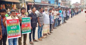 রাজশাহীতে শ্রমিকদের ওপর হামলার প্রতিবাদে মানববন্ধন, শ্রমিক নেতা পাখির গ্রেফতার দাবি