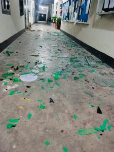 সরেজমিনে দেখা গেছে, রবীন্দ্রনাথ ঠাকুর একাডেমিক ভবনের অভ্যন্তরে আইন বিভাগের অফিস, নামফলক, নোটিশ বোর্ড এবং চেয়ারম্যানের কক্ষ ভাংচুর করা হয়েছে।