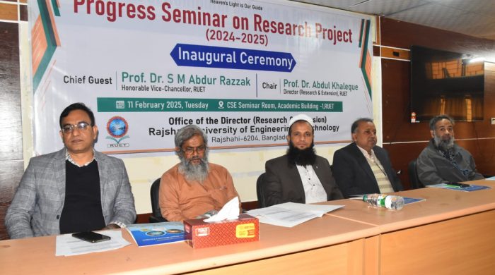 রাজশাহী প্রকৌশল ও প্রযুক্তি বিশ্ববিদ্যালয়ে (রুয়েট) আজ মঙ্গলবার সকালে বিশ্ববিদ্যালয়ের গবেষণা ও সম্প্রসারণ দপ্তরের অধীনে পরিচালিত ২০২৪-২০২৫ অর্থবছরে চলমান গবেষণা প্রকল্প সমূহের পরিচালকগনের অগ্রগতি বিষয়ক দিনব্যাপী এক সেমিনার শুরু হয়েছে।