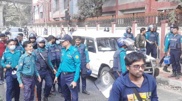 নরসিংদী টেক্সটাইল ইঞ্জিনিয়ারিং কলেজের কার্যক্রম বন্ধের সিদ্ধান্তের প্রতিবাদে সচিবালয়ের সামনে আন্দোলনরত করছেন কলেজটির শিক্ষার্থীরা। এ সময় তাদের ধাওয়া দিয়েছে পুলিশ। বৃহস্পতিবার (১৩ ফেব্রুয়ারি) দুপুর ২টা ১০ মিনিটের দিকে তিন দিক