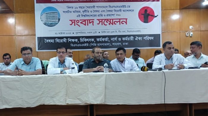 জুলাই গণঅভ্যুত্থানে আহত ছাত্র-জনতাকে চিকিৎসা দিতে অস্বীকার করা ও বাধা দেওয়া চিকিৎসকদের বিএমডিসির নিবন্ধন বাতিলসহ ১০ দফা দাবি জানিয়েছেন বৈষম্যবিরোধী শিক্ষক-চিকিৎসক, কর্মকর্তা-নার্স ও কর্মচারী ঐক্য পরিষদের নেতারা। বৃহস্পতিবার (৩১ অক্টোবর)