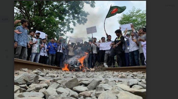 ৬ দফা দাবিতে রাজশাহী সরকারি এবং বেসরকারি পলিটেকনিক ইনস্টিটিউট ও টিএসসি শিক্ষার্থীরা বিক্ষোভ মিছিল এবং সড়ক ও রেলপথ অবরোধ করে। আজ মঙ্গলবার বেলা এগারোটা থেকে দুপুর পর্যন্ত নগরীর বিন্দুর মোড়