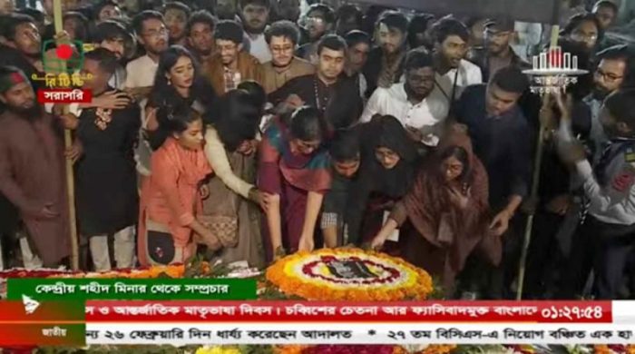 শহীদ মিনারে ফুল দিয়ে ভাষা শহীদদের প্রতি শ্রদ্ধা নিবেদন করেছে জুলাই অভ্যূত্থানে নেতৃত্ব দেওয়া সংগঠন বৈষম্যবিরোধী ছাত্র আন্দোলন। শুক্রবার (২১ ফেব্রুয়ারি) প্রথম প্রহরে রাত দেড়টা নাগাদ বৈষম্যবিরোধী ছাত্র আন্দোলনের মুখপাত্র