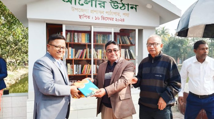 রাজশাহীর পবা উপজেলা পরিষদ চত্বরে ঢুকলেই পুকুরপাড়। সেই পুকুরপাড়ে দাঁড়িয়ে আলোর উঠান পাঠাগারটি। উপজেলা নির্বাহী কর্মকর্তার (ইউএনও) কার্যালয়ে যাওয়ার আগেই চোখে পড়বে এই পাঠাগার। একটি বেদিতে দেয়াল তুলে করা হয়েছে